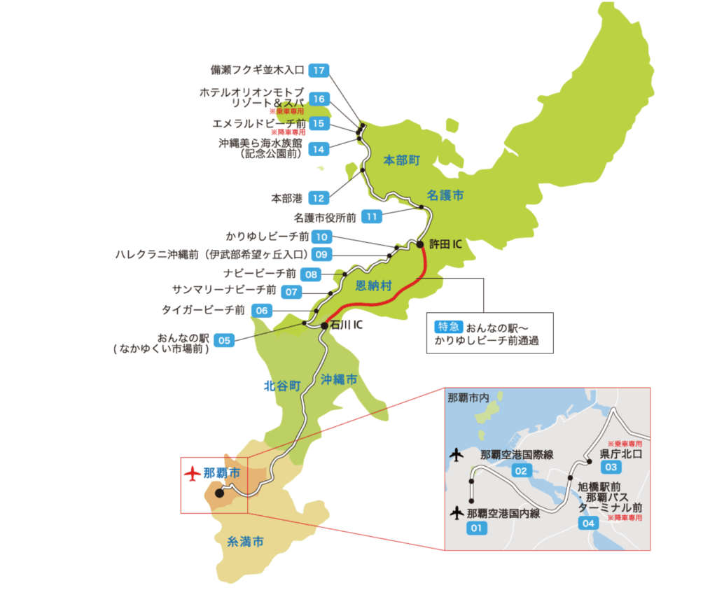 那覇空港観光案内所(国内・国際線ターミナル1F) - 運行本数:1日数便(時期により変動あり)