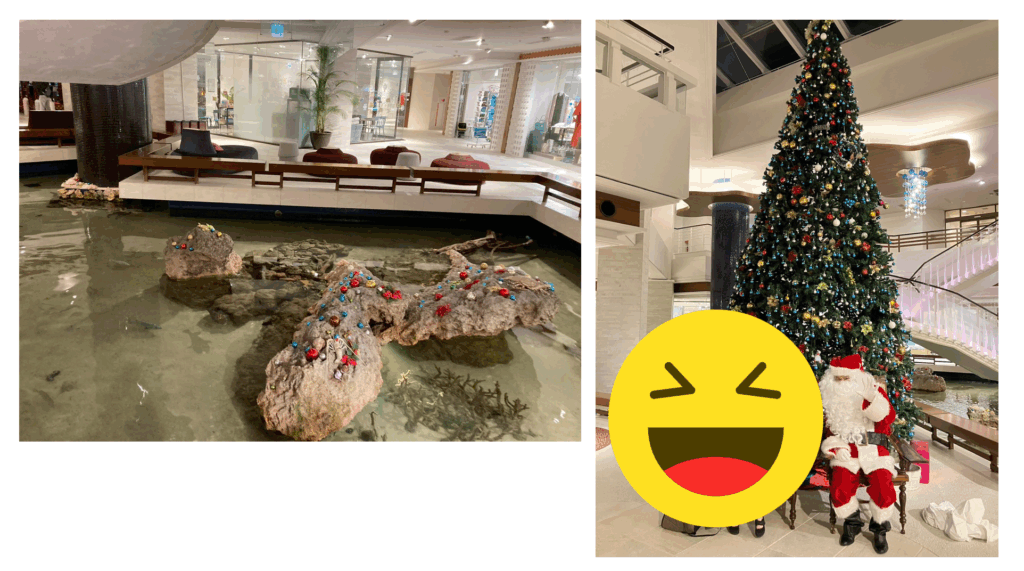 ロビーには大きなツリーとサンタクロースが登場し、館内はすっかりホリデームードに包まれていました。