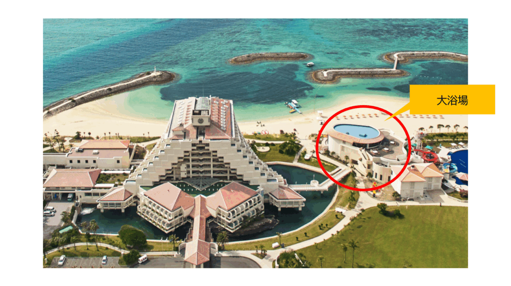 日中はアクティビティ、夜はこの大浴場でゆったり疲れをリセット。まさに“リゾートステイ”にふさわしい癒し空間でした。