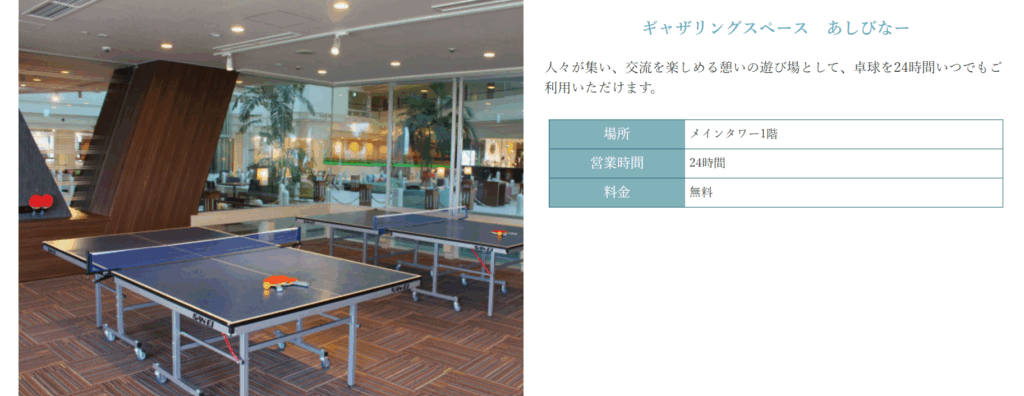 “あしびなー”とは沖縄の言葉で「遊び場」。特に、卓球好きは最適なスペースです!