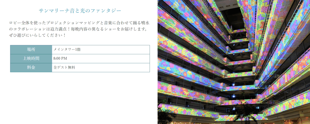 夕暮れ時には大浴場「サンセットバス」から東シナ海に沈む夕日を眺め、夜は光と音のファンタジーで一日を締めくくる——そんな“非日常のゆとり”を感じられる滞在でした。