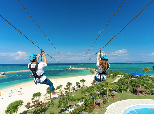 全長約250mの海上を滑走するジップライン。スリルと海・砂浜の美しい風景をお楽しみください!