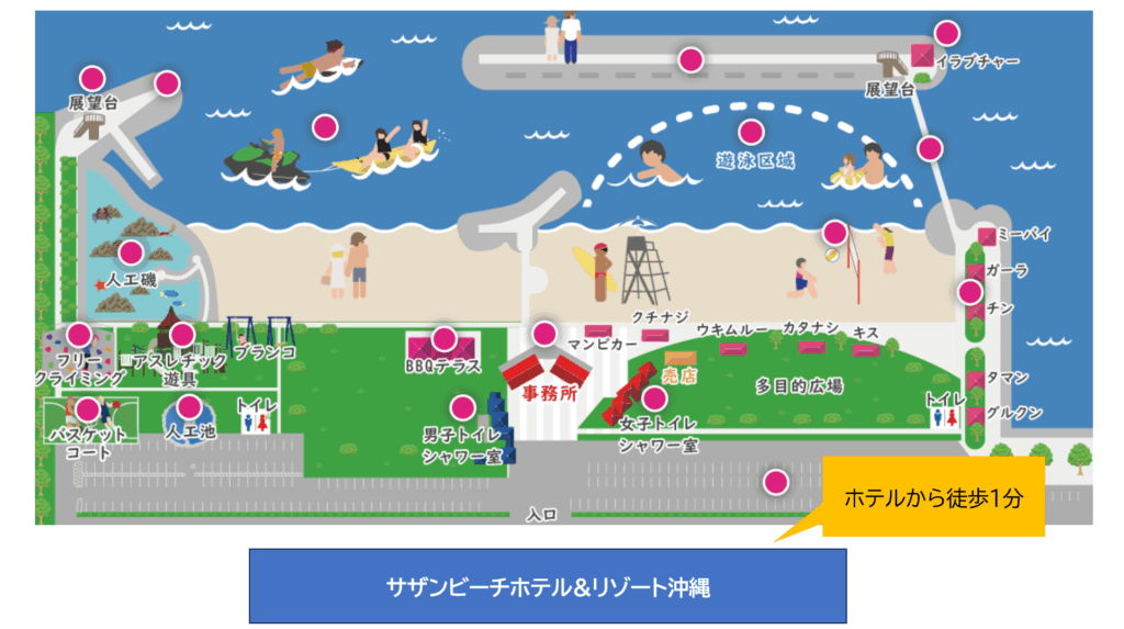 ホテル内ではありませんが、サザンビーチホテル&リゾート沖縄から徒歩わずか1分の場所にあるビーチ。